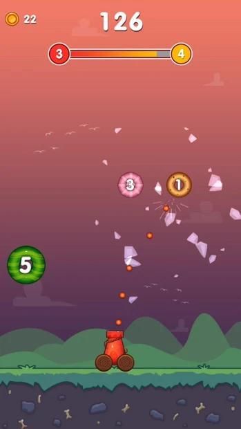 Gabungkan emas dengan menghancurkan permen dan perbarui meriam Anda.