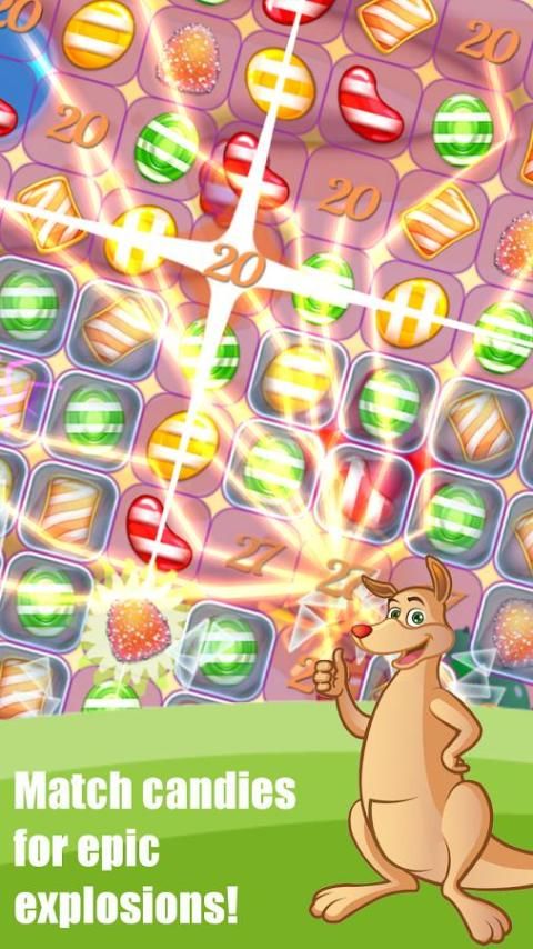 Mari kita bermain Permen ledakan Jelly, datang ke dunia permen manis dengan teman-teman Anda