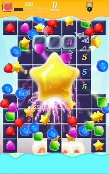 ● Menghancurkan 5 permen di garis untuk membuat pencahayaan guntur permen splash.
