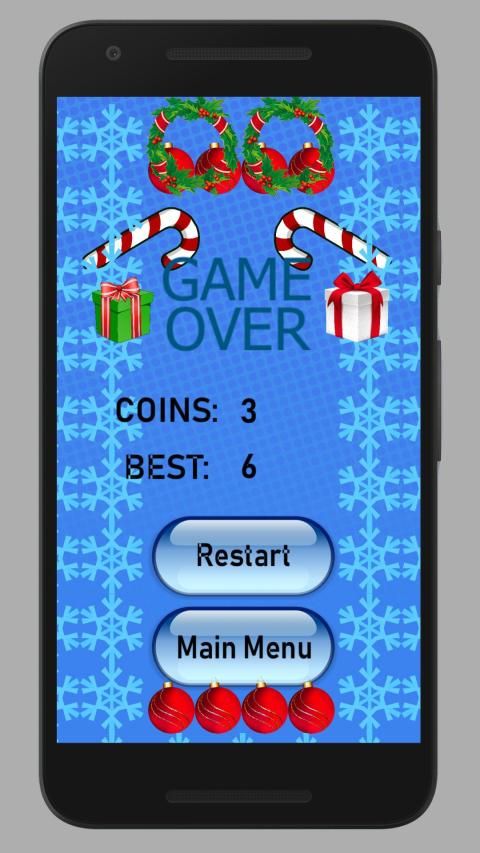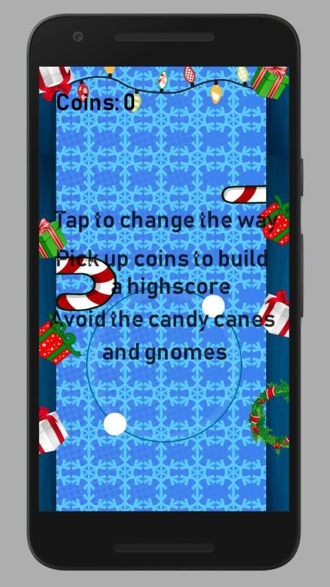 You have to avoid the candy canes and the gnomes, as they will destroy the snowballs on the ring. You have to tap and the snowballs will change their direction of movement. Simple but hard! You have to build your highscore with picking up the christmas ornaments as coins, the more you pick up the higher your score!