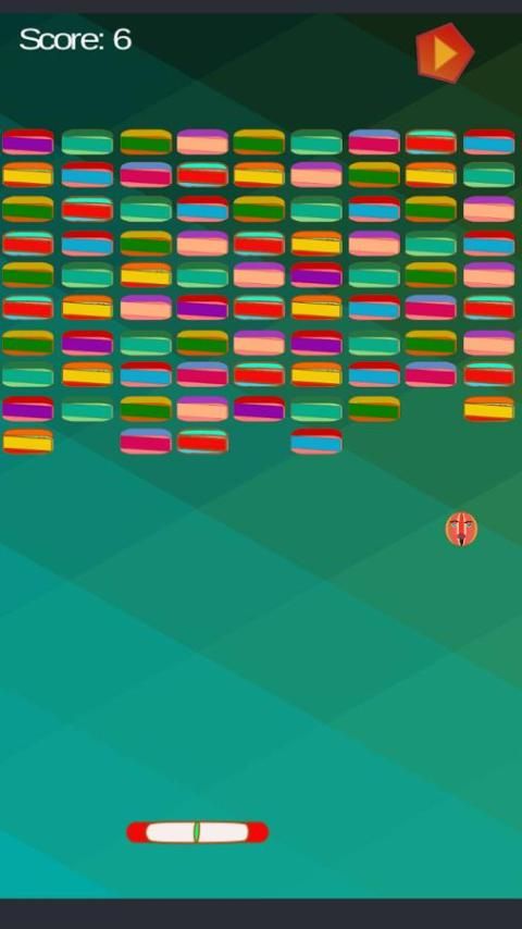 Ini adalah 2D bata breaker game dengan 2 tingkat awalnya. Ada dayung yang akan mendukung bola untuk memecahkan semua candy..If bola jatuh dari rebound atau dari tepi dayung maka Anda harus me-restart level..You tidak dapat mencapai level 2 kecuali jika Anda memecahkan semua permen dari tingkat 1 ..