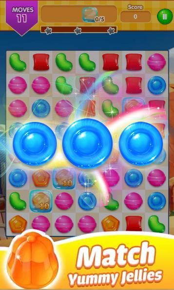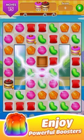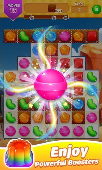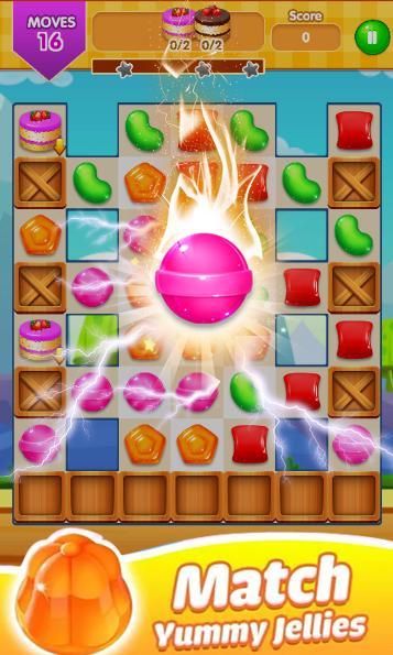 Tukar dan Cocokkan setidaknya 3 jeli dari jenis yang sama untuk meledak!