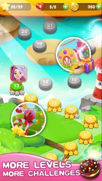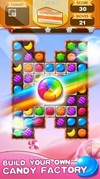A fun Candy match 3 puzzle game.switch and match candies in sweet adventure to progress to the next level. have a candy journey in this fantastical candy factory