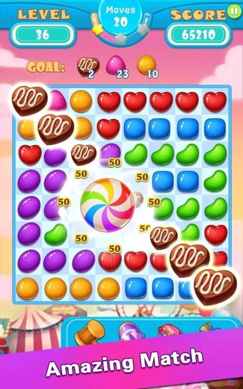 Mencocokkan 3 atau lebih permen untuk mengumpulkan mereka. Buat skor yang lebih tinggi dalam Permen Fever!
