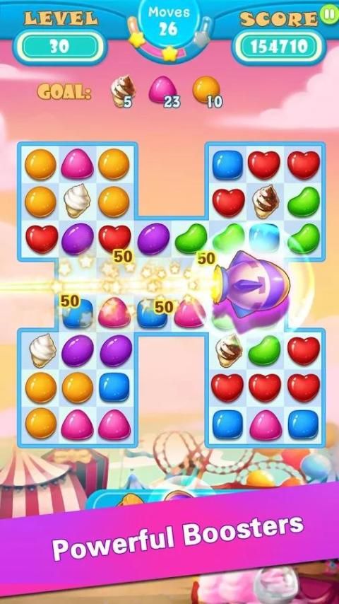 - Swap dan beralih untuk mencocokkan permen warna yang sama