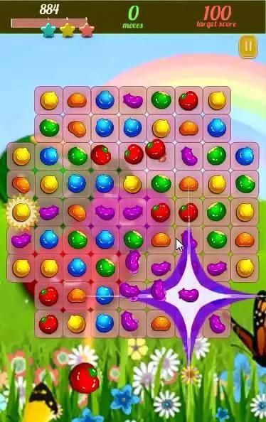 Pencocokan 3 elemen berturut-turut menghilangkan semua 3 dan elemen lainnya jatuh untuk mengisi ruang yang tersisa.