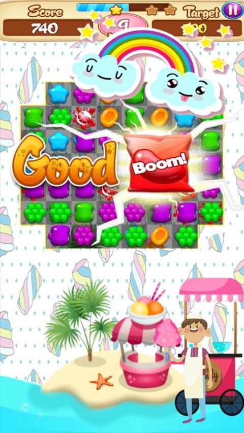 menghubungkan tiga atau lebih permen untuk meledakkannya dengan efek sihir yang fantastis.