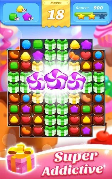 Are you Super into Sweet and delicious candy ? Match 3 or more scrumptious candies in Candy Mania. Use various of boosters to achieve highest score and win 3 stars in each level. have lots of fun in the candy mania wonderland!