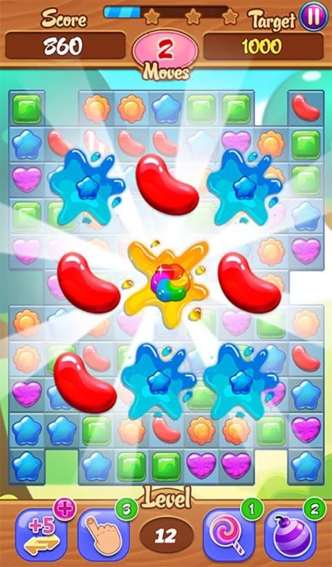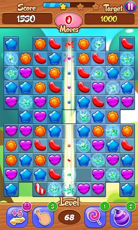 - Slide, swap, switch dan pertandingan 3 atau lebih permen manis yang sama