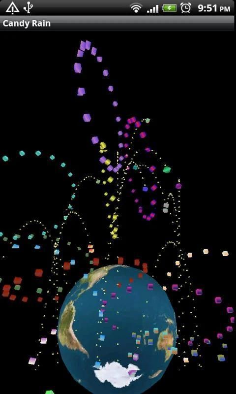 Fireworks mungkin tampak ajaib, tapi Candy Rain mungkin menjadi acara yang paling lezat. Gunakan jari Anda untuk memutar bumi dan menjelajahi dunia Candy.