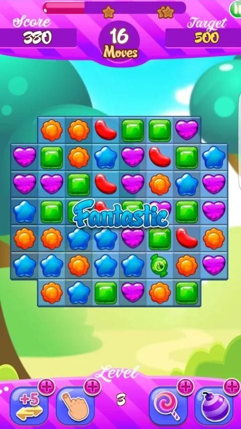 - CANDY BLASTER POWERS: Gunakan manis power-up Candy Raya dan memiliki beberapa gerakan tambahan, ganti warna permen atau ledakan salah satu permen untuk menyelaraskan lapangan,