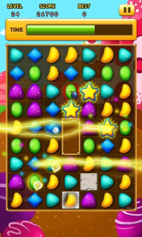 Mulai temukan dan dapatkan bintang-bintang permen yang bersinar! Pecahkan semua teka-teki dan cobalah untuk mendapatkan tiga bintang di setiap level! Bersenang-senanglah dalam petualangan termanis ini!