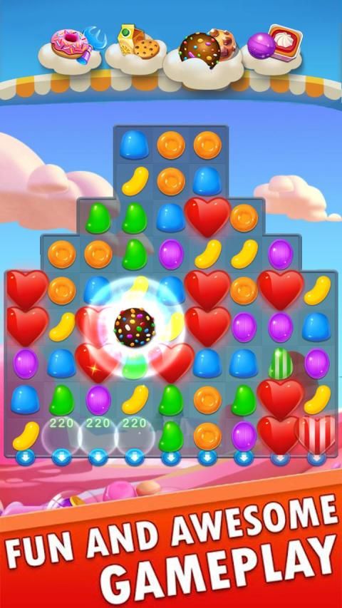 Ribuan tingkat teka-teki diisi dengan permen dan kue yang dibuat dengan hati-hati. Sandingkan dan ledak tiga atau lebih permen yang sama untuk membersihkan level!