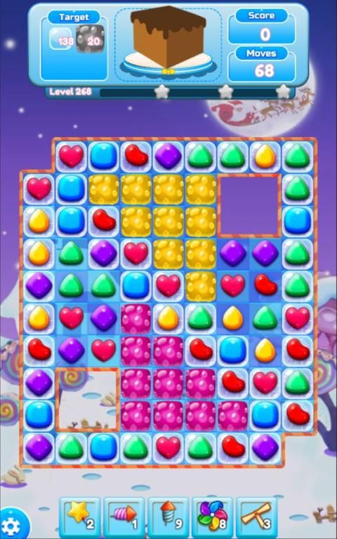 - Ada banyak tingkat dan setiap tingkat memiliki target yang Anda akan menyelesaikan (mendapatkan skor, drop kue ke bawah, menghapus beku ...).