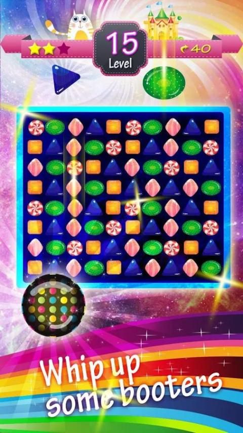 Pertandingan tiga atau permen lebih sama untuk membuat mereka booming, menghancurkan mereka! Mencapai target skor atau mengumpulkan permen untuk pindah ke tingkat berikutnya.