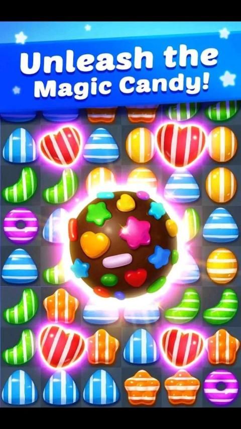 Play the most relaxing and splended match-3 puzzle game, along with coloful candies and lollipop, no time limit, free and powerful boosters