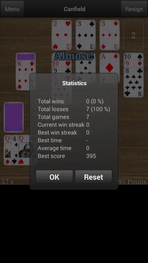 Canfield (also known as Canfields saloon) is a card solitaire where your challenge is to build a foundation that contains all 52 cards ordered in increasing order for each suit. It is fun and it may sound simple, but finishing this solitaire is more difficult than you might think. In the game you can choose from multiple card tables and card backsides so you can get a personal experience. You also have access to highscore and game statistics which you may use to improve your results. This is one of our favorite card solitaires, and we are convinced you will enjoy it too! Try it out now.