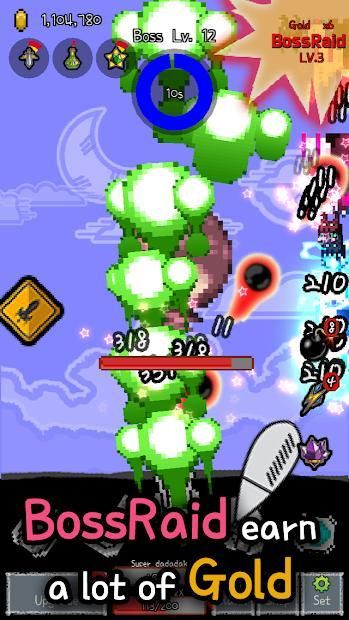 When boss monsters are defeated, the boss raid mode is activated. When the boss is defeated continuously, the level of the boss raid mode increases, and the amount of gold earned also increases!