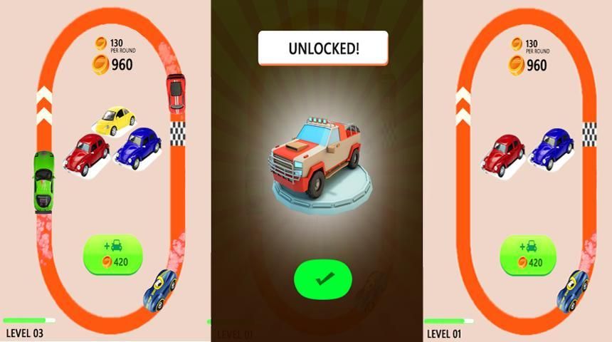Kumpulkan Racing Mobil; menempatkan mereka di Lingkaran Racing, Hindari box bercahaya untuk perangkap, Lingkaran Tonton Racing Car di Mobil Merge Menganggur Car Racing Games taipan.