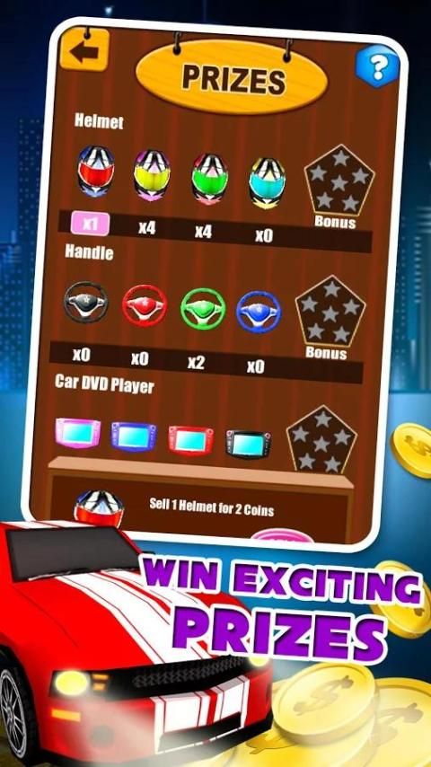 untuk mendapatkan hadiah khusus seperti Helm, Menangani Mobil, Pemain DVD, MP3 Players, woofer, Keys, Dice,