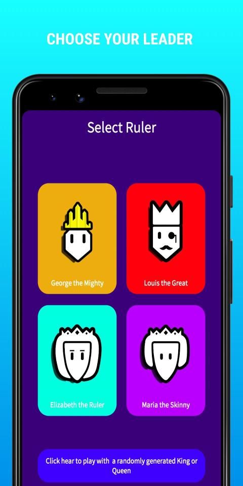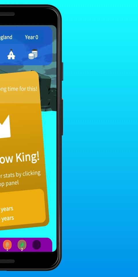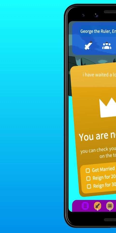 Peristiwa tertentu akan menentukan masa depan kerajaan Anda. Menikah dengan seorang ratu yang cantik atau pintar, berdagang dengan pedagang, penyihir dan orang-orang kota Anda. Jaga kepercayaan orang-orang Anda untuk menghindari bencana. Pergi berperang dengan kerajaan saingan. Hasilkan uang setiap tahun sebagai penguasa kerajaan.