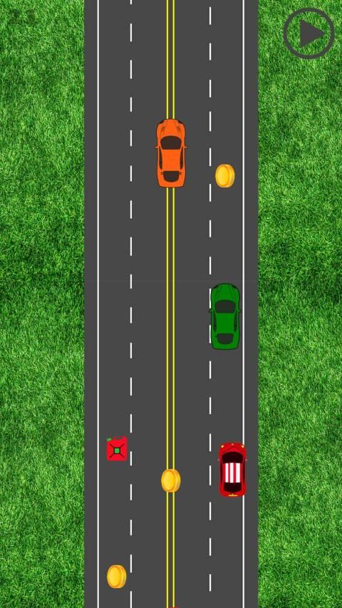 It's a simple game but you have to be a good rider to master it. Use the arrows on the screen to move your car to the right and left and press the brakes as you approach other cars so you do not get involved in an accident with them on the road and do not forget collecting coins on your way to get points and gasoline Can get more time