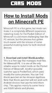 Install NEW CARS available for MINECRAFT PE. Every MOD has title, description , screenshot and download button. Search any MODS for MCPE you want just browse favorite mod and press DOWNLOAD ... Done!
