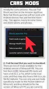 - Cars Mod can only be applied with Block Launcher application and you need install the full version of Minecraft PE and BlockLauncher FREE/PRO in your smartphone or tablet.