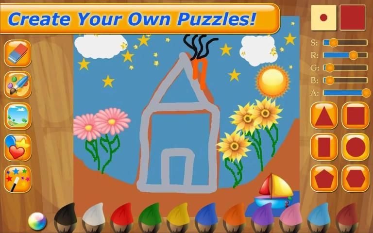 * Create your very own puzzles in a draw and paint activity