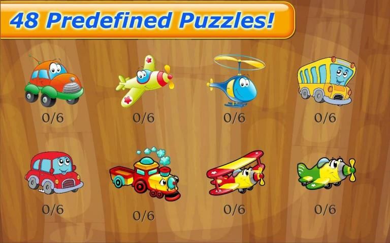 Play 48 amazing jigsaw puzzles with different cars, trucks, airplanes and many more vehicles!