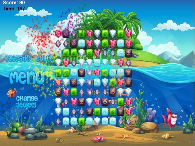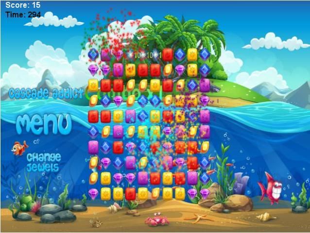 - Fun dan banyak perhiasan interaktif dalam permainan Cascade Adict ini