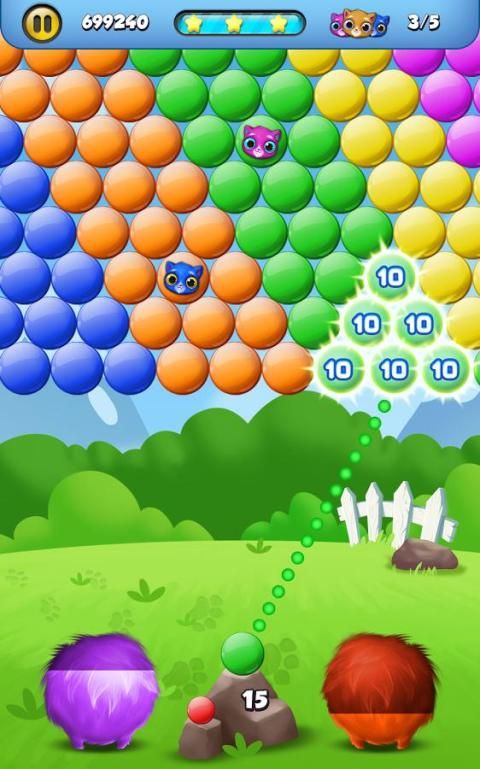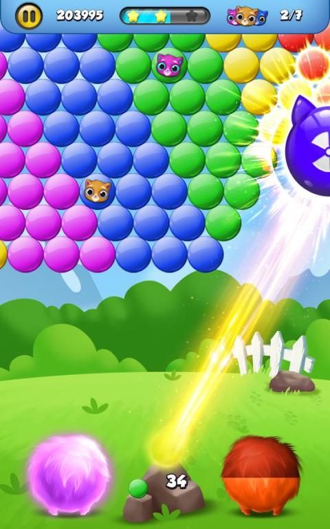 2. Rescue lucu anak kucing dengan bermunculan gelembung yang menjebak mereka.