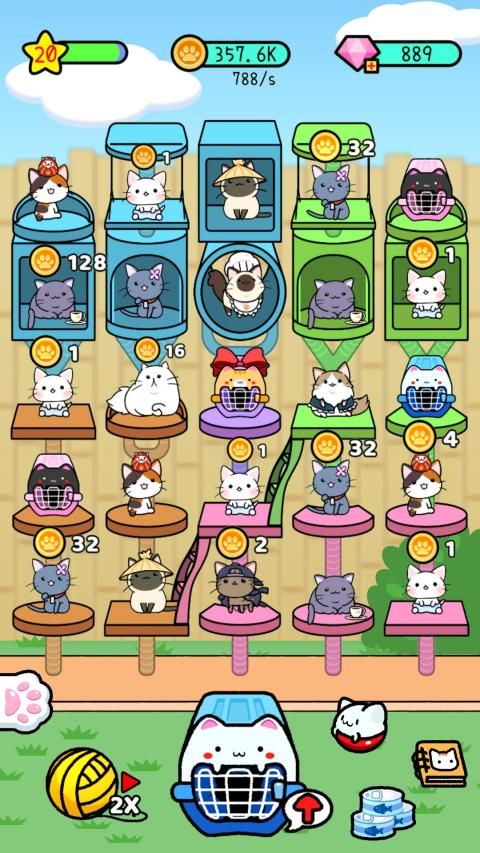 Start by merging your kittens into adorable cute furry felines. Then grow your cat tree into a massive cat tower.