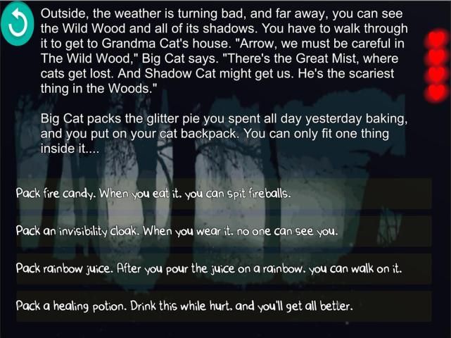 Ini adalah memilih petualangan koperasi permainan kucing Anda sendiri. Role play sebagai Big Cat dan Little Cat disesuaikan dalam permainan cerita ini. Mereka tinggal bersama di Wild Wood, dan mereka ingin mengunjungi nenek Cat di Kota Besar untuk memberikan kue gemerlapnya untuk pesta ulang tahunnya. Tapi untuk sampai ke sana tepat waktu, mereka harus melewati bagian menakutkan dari hutan di mana The Mist dan Shadow Cat hidup!
