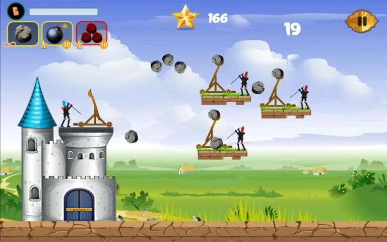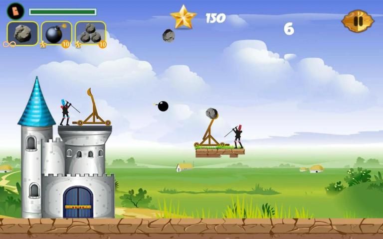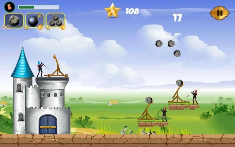 Throw the stones from catapult on the enemy to complete the missions. This catapult fight game has a simple intuitive control. Tap on the screen and pull to charge the catapult and select the tension force. Release to launch the projectile into the enemy. In the "Catapult Fight" game you must help the stickman to defend his castle from the siege weapons of the enemy.
