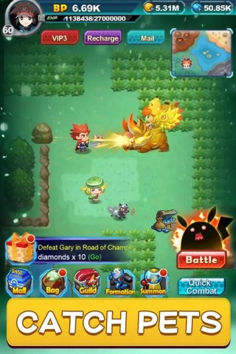 Menangkap hewan peliharaan di padang rumput, mengumpulkan dan meningkatkan Pokimons Anda sendiri, menjadi yang terkuat.