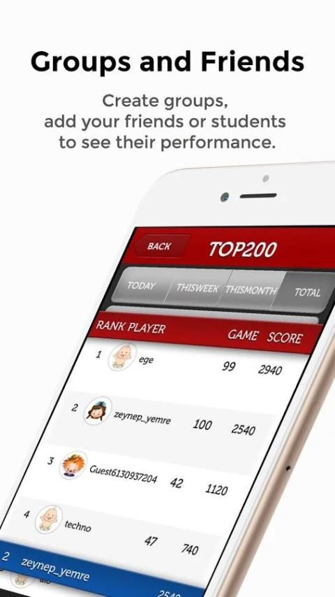 - Anda dapat membuat grup, menambahkan teman Anda atau siswa untuk melihat skor dan kinerja mereka.