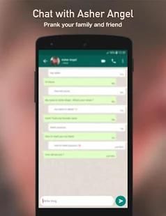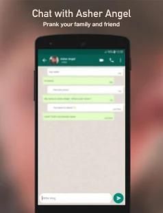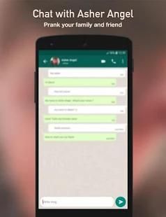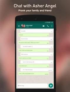 Apakah Anda suka Asher malaikat? Jika ya maka aplikasi ini dirancang untuk penggemar Asher Malaikat pertama. Aplikasi ini digunakan untuk membuat menyenangkan chatting dengan selebriti dan membuat teman Anda iri. Aplikasi ini memungkinkan Anda untuk membuat percakapan simulasi dengan orang dummy sebagai Asher Angel. Platform ini akan memungkinkan Anda untuk menerima dan mengirim pesan ke Asher Angel. Jangan berpikir bahwa obrolan adalah nyata. Aplikasi ini belum apapun dengan Asher Angel, Chat dengan Asher Angel, tetapi tampaknya bahwa Anda berbicara dengan orang ini. Aplikasi chatting simulasi ini hanya seperti aplikasi lelucon yang membantu Anda untuk membuat chatting prank lucu dengan teman-teman Anda. Terutama anak laki-laki muda dan perempuan menyukai aplikasi ini dan membuat menyenangkan dengan orang lain teman-teman. Sekarang Anda dapat dengan cepat membuat percakapan palsu setiap kali Anda ingin membuat menyenangkan waktu. Aplikasi ini chatting dengan Asher Malaikat berisi banyak fitur menarik di bawah ini: