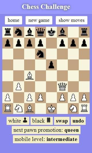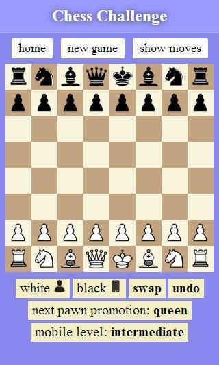 If the game is too easy or hard, you can change the level of the mobile using the 'mobile level' button. Five levels are available. To have a more challenging chess game, tune the mobile to the level higher than yours.