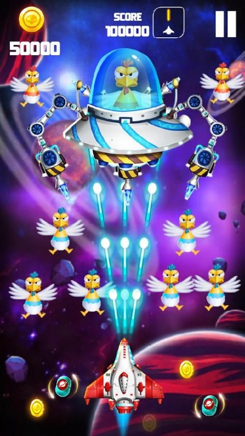 Tekan layar untuk bergerak, menghancurkan musuh dalam petualangan Anda! Menyelamatkan sistem surya dari menyerang ayam!
