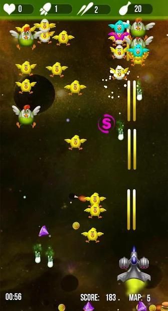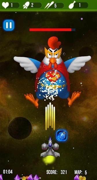 Tugas Anda adalah menyelamatkan galaksi dari gerombolan ayam yang menyerang, Anda akan mengendalikan pesawat luar angkasa yang sendirian, dan harus melindungi Bumi dari kawanan ayam yang menyerang dan Untuk menyelesaikan tugas ini, Anda harus memiliki keberanian dan kebijaksanaan.