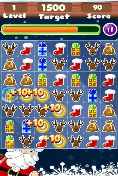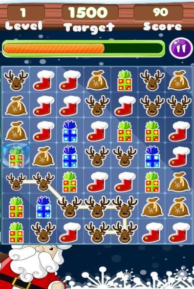 Swap, drag and sweep the cute Christmas pieces. like the christmas tree, santa's hat, Christmas bells and baubles, gingerbread man and ice crystals. Make matches of 4 or 5 to create powerful bombs and power-ups. And use Santa's mitten to collect a single piece. You'll be rewarded with cookies and soda. Christmas themed puzzle pieces. Match Christmas trees, Christmas decorations sugar filled Gingerbread men, beautiful bells and purple stars. Play your way through tons of Christmas levels. Crush your way to the top by clearing away candy, toys, and other holiday pieces. Is a great match 3 puzzle game. Did I mention the winter music