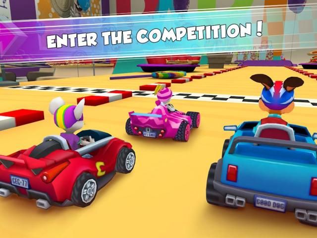 - Mempercepat, rem dan melompat untuk menavigasi trek balap penuh kejutan!