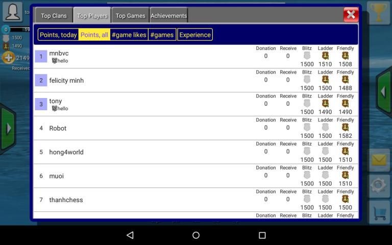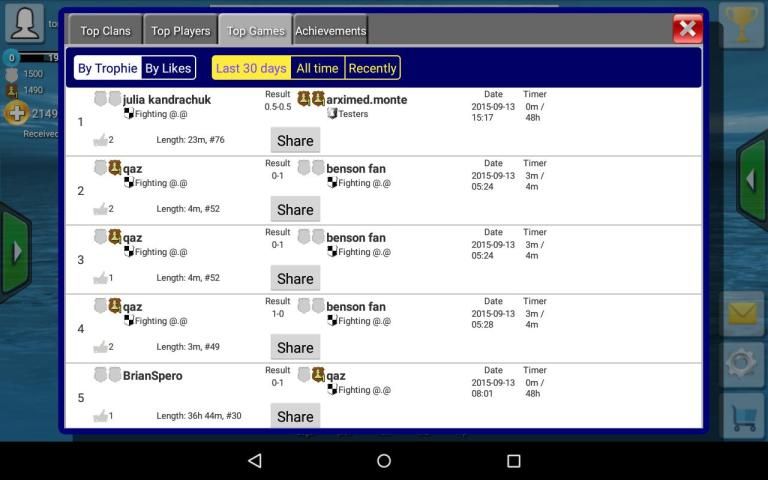 - Keuntungan banyak prestasi dan bonus sebagai faktor menyenangkan ketika bermain dan menang bahkan Grandmasters, terlepas tingkat catur Anda