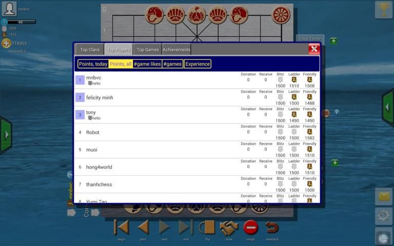 Clans Of Xiangqi is not just a Xiangqi game nor ELO counters. It is much more. Above all is fun and a community of players.
