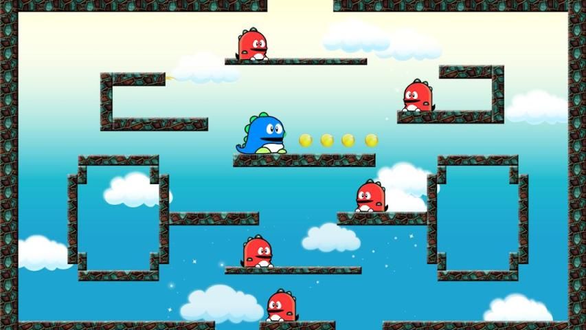 The gameplay is simple; you start out as either of Bob and Bub who shoot bubbles at their enemies and use the on screen buttons to either jump over them or let them burst on their own and reach higher levels. The game will often reward you with special candies and rainbows that will allow you to excel further in-game. With a neat, retro gaming interface, this game brings you back the thrill of old games.
