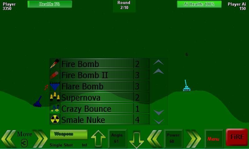 The game is turn-based, where each player controls his own artillery tank on a 2D battlefield. By rotating the tank's turret, selecting the correct force and weapon your goal is to damage your enemies until they run out of health and die. However beware, as the weapons may be used in many ways to create many interesting scenarios and only your planning and skill will be able to grant you victory.