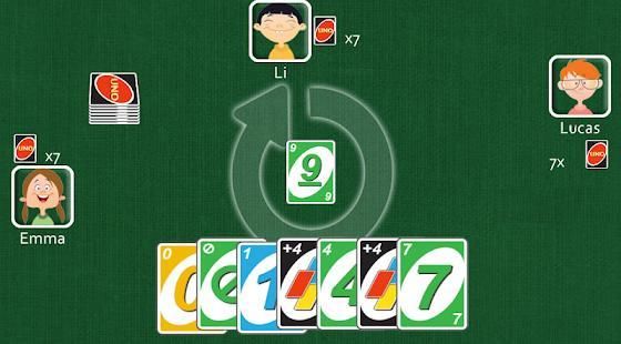 UNO klasik dimainkan dalam tiga putaran. Cobalah untuk menyingkirkan semua kartu di tangan Anda sebelum lawan Anda. Ketika giliran Anda, mencoba untuk mencocokkan kartu di tumpukan buang, baik dengan nomor, warna, atau simbol.