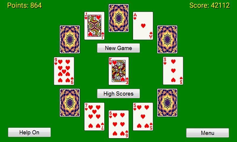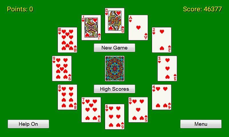 Simple 1 player solitaire card game. Patience played out in a clock face pattern.