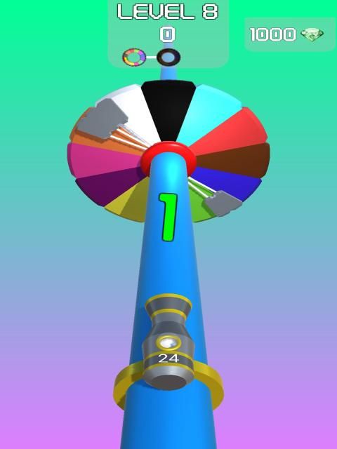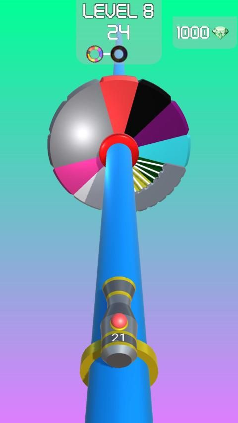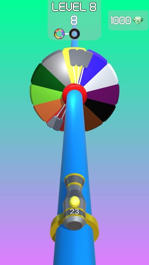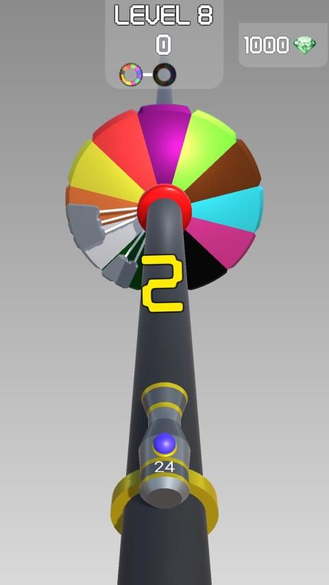 When the Color Target is the Full Gray Target, the Target starts to rotate. Hit the rotating target with colored balls and pass level.